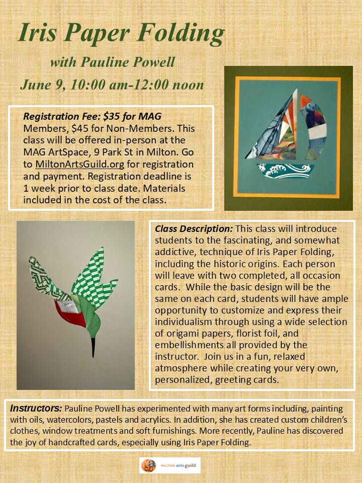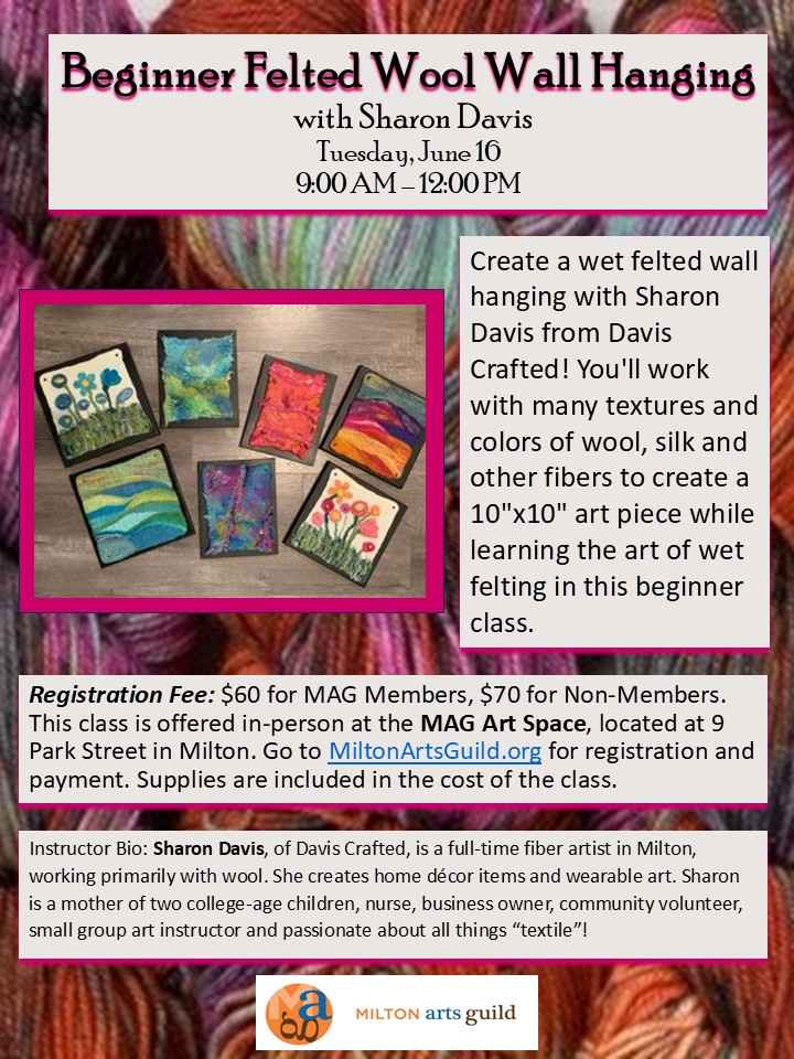 Class will be held at the MAG ArtSpace, 9 Park St., Milton