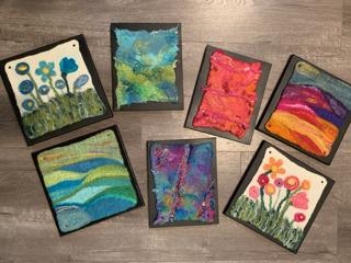 Use many textures and colors of wool, silk, and other fibers to create a 10” x 10” art piece while learning the art of wet felting.